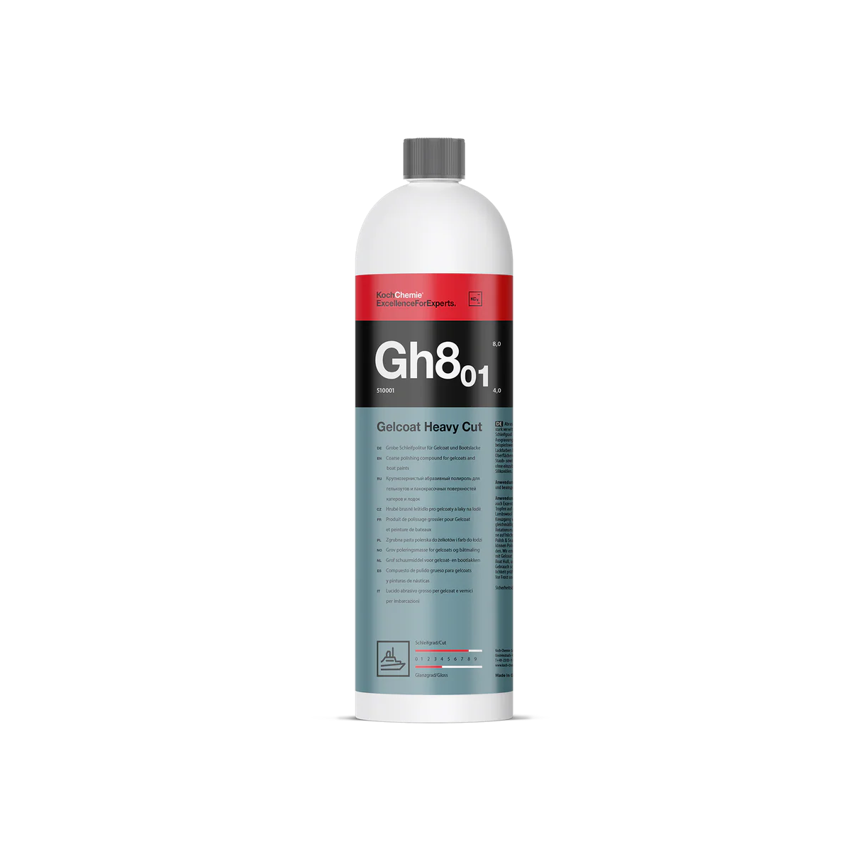 Gelcoat Heavy Cut „Gh8.01“ wurde speziell für die Anforderungen der Marineaufbereitung entwickelt. Mit ihrem hohen Schleifgrad entfernt sie effektiv tiefe Kratzer, Ausgrauungen und Scheuerstellen, die durch Umwelteinflüsse oder mechanische Beanspruchung entstanden sind. Die Politur eignet sich hervorragend für die erste Stufe eines mehrstufigen Polierprozesses und bereitet die Oberfläche optimal für nachfolgende Polierschritte vor.